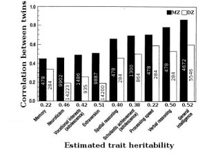 HOWEVER heritability estimates may be informative but they are NOT absolute, essential or immutable. Heritability studies cannot predict exactly how much is heritability and how much environment but only general trends and even then you need stable environments to factor for change in heritability.