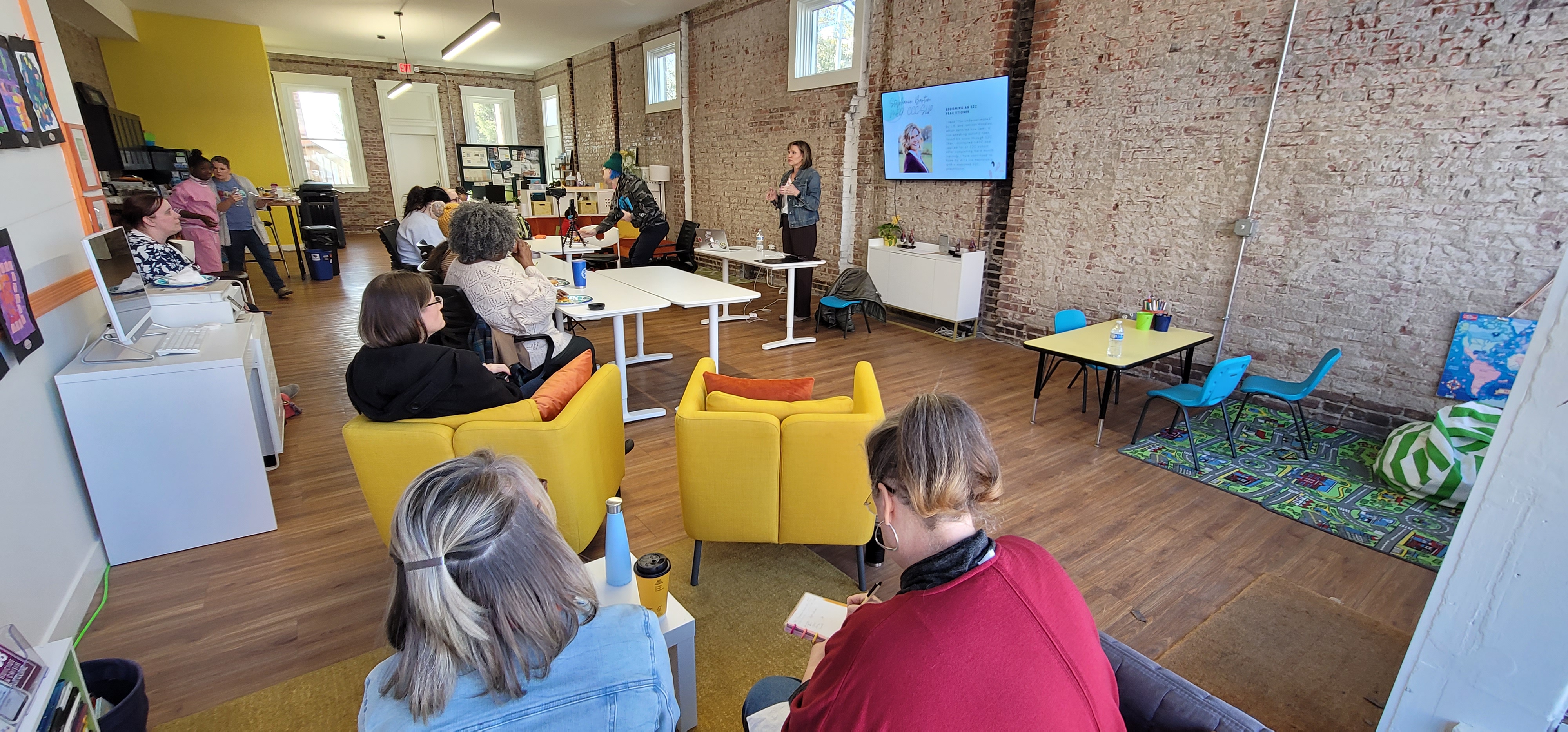 The gathering came courtesy one of our mini-grants to New Community Church, with a primary focus on developing opportunities for minimally verbal children to express their prayers through facilitated communication.