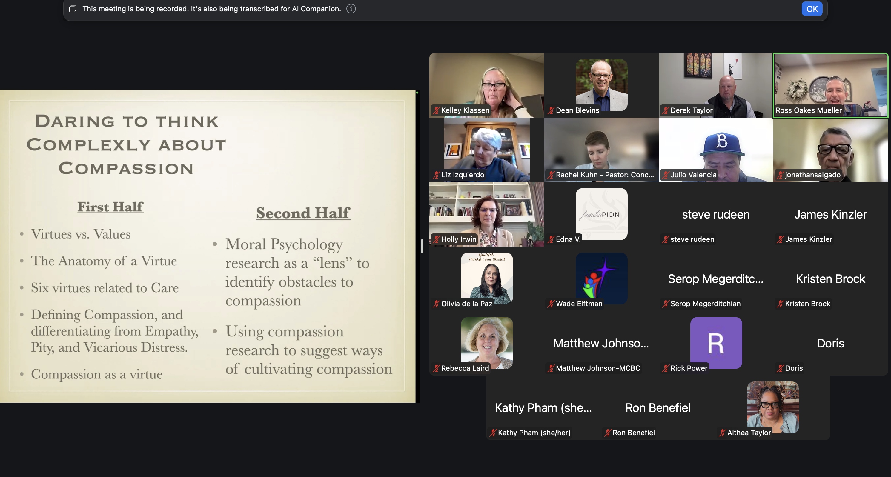 A brief excerpt from our recent Day of Learning with Dr. Ross A. Oakes Mueller. In this session Dr. Oakes Mueller separates the virtue of Compassion from specific challenges of being emotionally overwhelmed or having pity for a person. Oakes Mueller also distinguishes compassion from everyday empathy providing a clearer definition of the virtue.